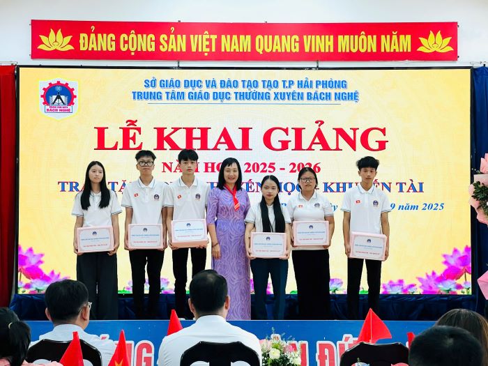 Sáng ngày 05/9/2025, trong không khí rộn ràng của những ngày thu tháng Chín, Trung tâm Giáo dục thường xuyên Bách Nghệ Hải Phòng đã long trọng tổ chức Lễ Khai giảng năm học 2025 – 2026. Đây không chỉ là khoảnh khắc thiêng liêng mở ra một hành trình mới, mà còn là lễ khai giảng đầu tiên trong lịch sử Trung tâm, đánh dấu một cột mốc đáng nhớ, mở đầu cho chặng đường phát triển đầy tự hào và kỳ vọng.
